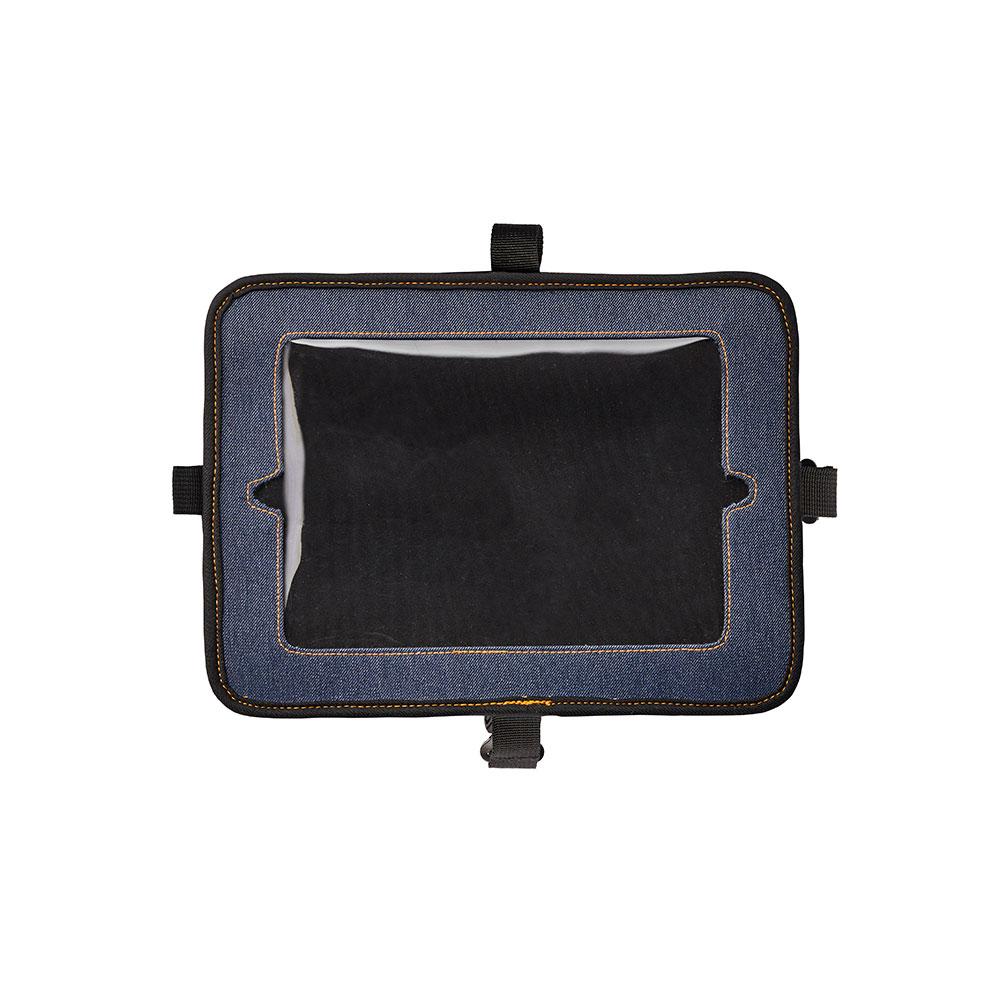 ビニール窓付きなので中にタブレットを入れたまま操作が可能。USBケーブルを通す穴が開いており、タブレットを充電しながら使用できるのでとても便利です。