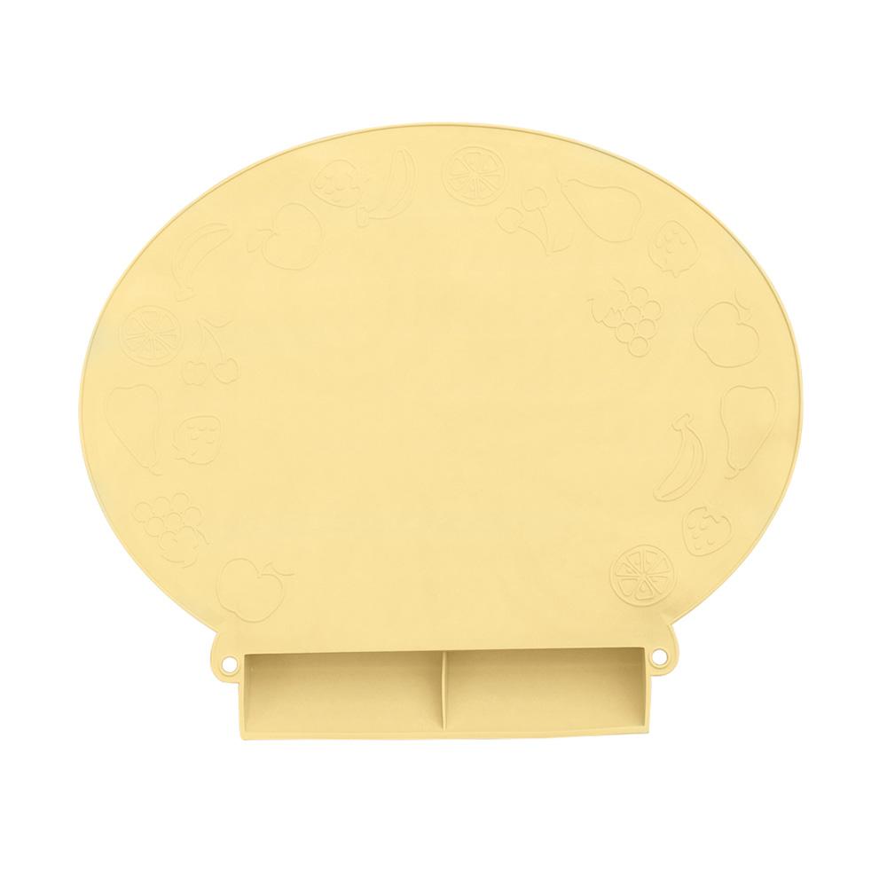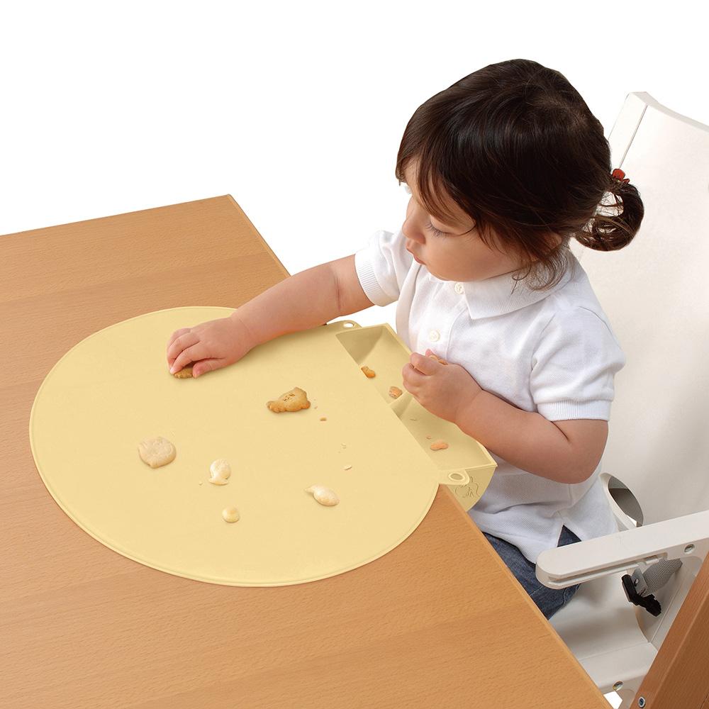 食べこぼしをキャッチするポケット付きのお食事マットです。